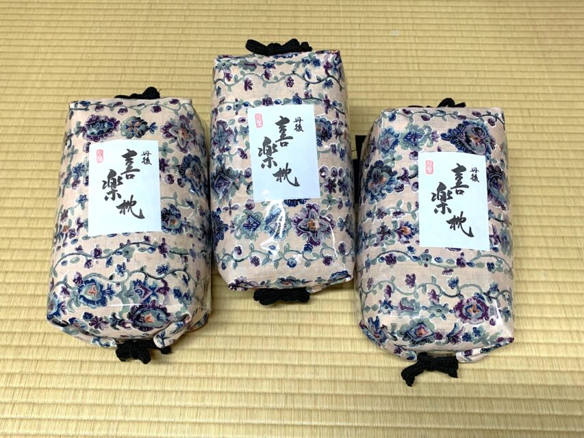 喜楽枕(俵型)も中材のソフトパイプをしっかり入れますので、生地にかなり負担がかかります。これも側生地を2重にしておきました。
