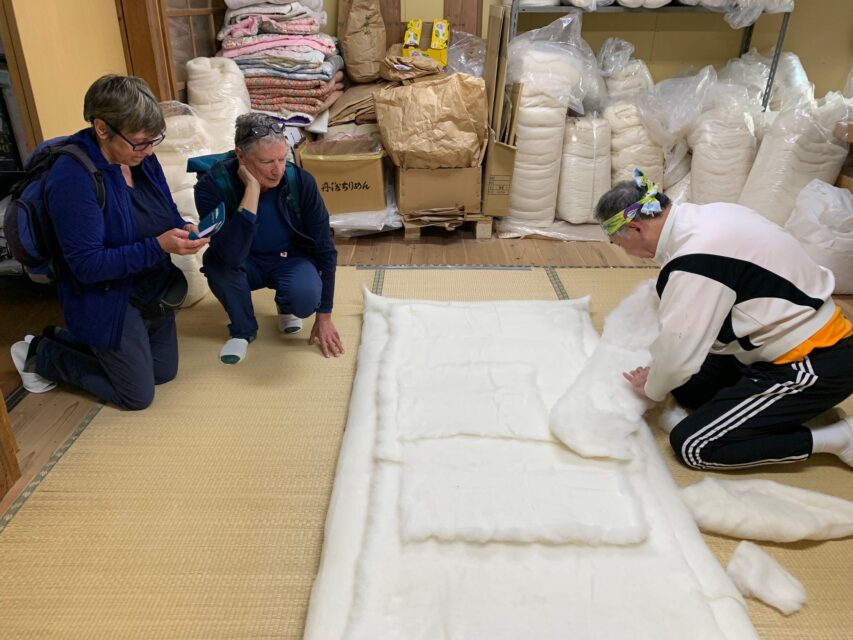 お客様「はじめは慣れなかったから大変でしたが、慣れるととても良いです。日本に来たら是非作っているところを見たかったです。作っているところを見て、とても大変な作業だし技術がいることがよくわかりました。石堂の布団をみんなに薦めたいです」