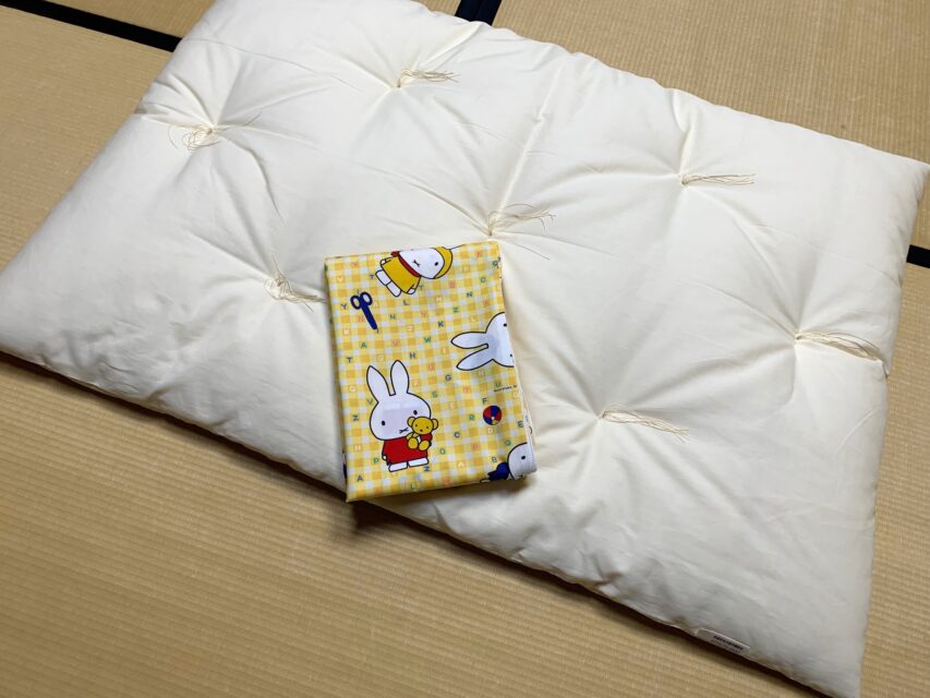 一代前のベビーふとんをリメイクして初孫のふとんに。