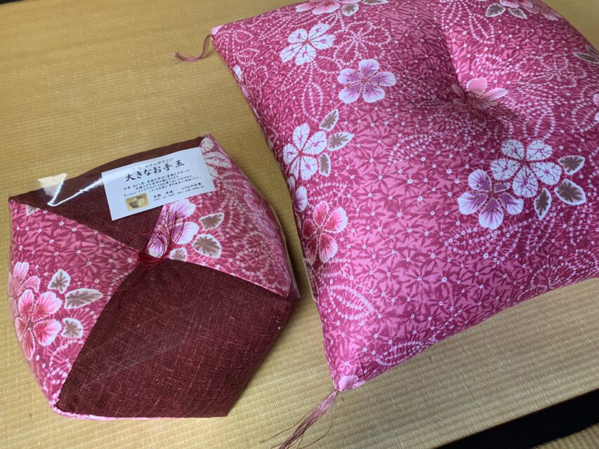 木綿わた入り座布団とそば殻入りお手玉座ふとん