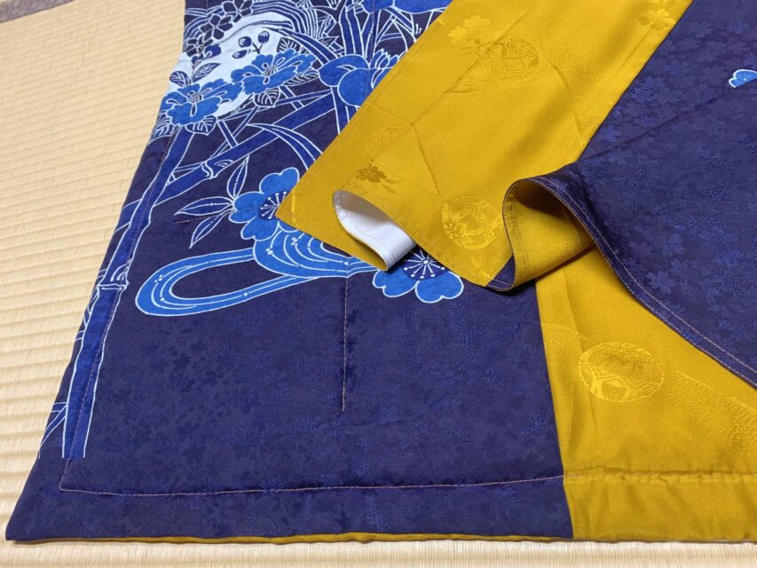 二十歳の振袖、大学の卒業式、同僚の先輩の結婚式、自分の結婚式で引振袖にと、思い出深い着物ですので、膝掛けとしても大切に使おうと思います。今回はリメイクを引き受けていただきありがとうございました!!