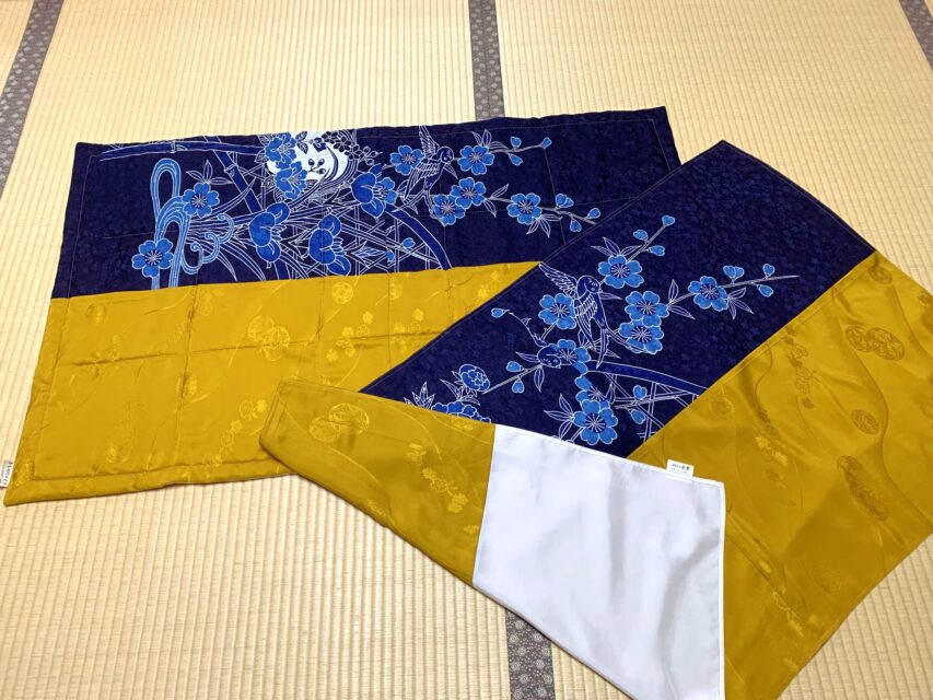 二十歳の振袖、大学の卒業式、同僚の先輩の結婚式、自分の結婚式で引振袖にと、思い出深い着物ですので、膝掛けとしても大切に使おうと思います。今回はリメイクを引き受けていただきありがとうございました!!
