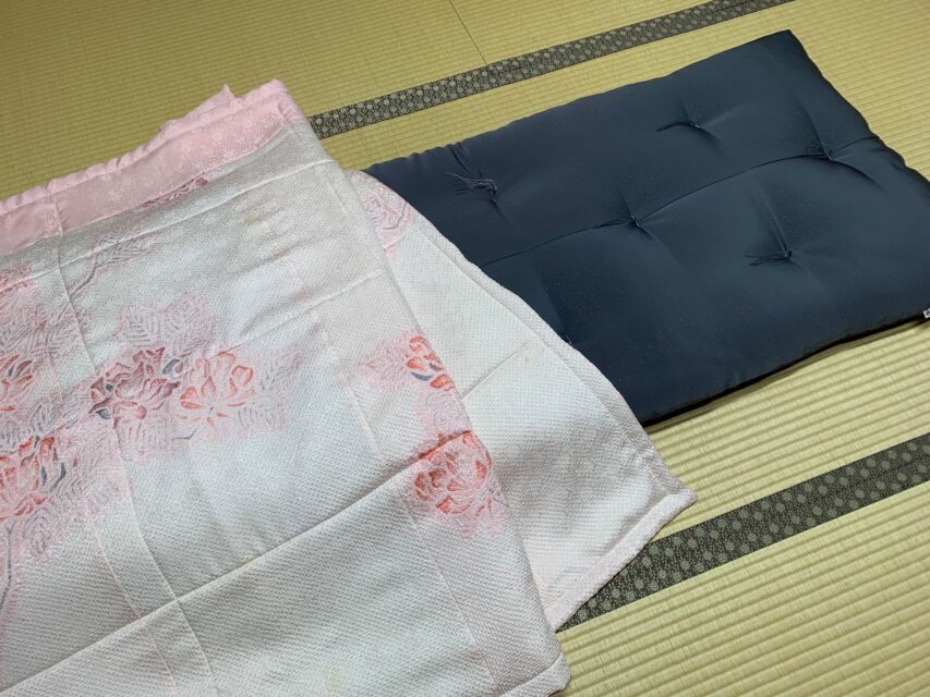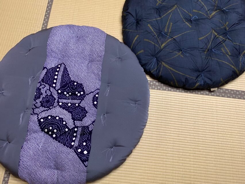 大島紬のまる座布団と残りの生地を使ったまる座布団