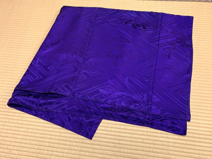 紫の残りの生地は「小さくなっても良いのでブランケットに」というご注文です。絹の光沢がたまりませんね~